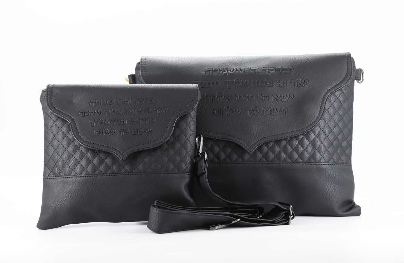 תיק טלית תפילין גוון שחור והבלטה 'יברכך ה' מפואר עם רצועה
